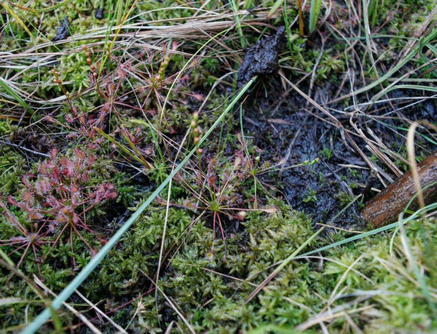 Der Sonnentau ist ein Bewohner im Übergangs- und Hochmoorbereich. Die nötigen Nährstoffe bezieht er nicht aus dem nährstoffarmen Boden, sondern hat sich auf Insektenfang spezialisiert. Die Pflanze